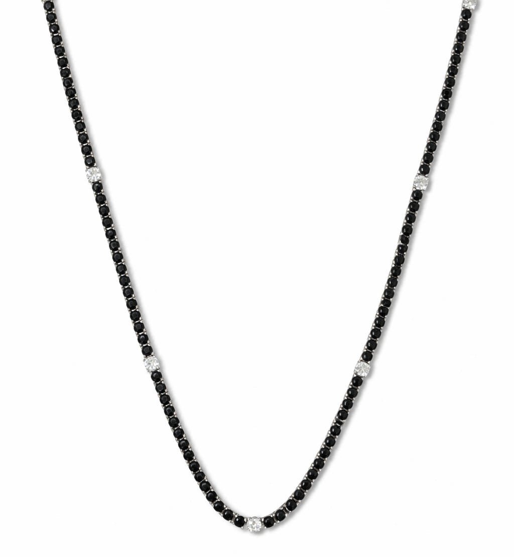 שרשרת טניס עם שיבוץ שחור ואבנים לבנות