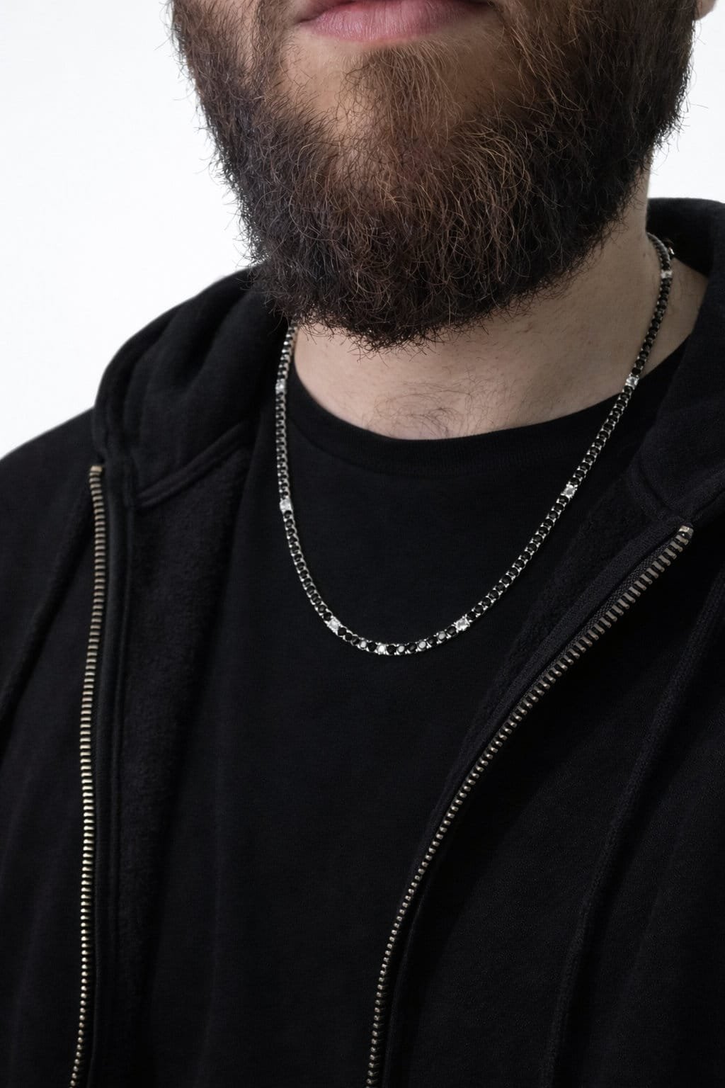 שרשרת טניס 3 מ"מ שחורה/לבנה עם קוביות לבנות 4 מ"מ מכסףשרשרת טניס 3 מ"מ שחורה/לבנה עם קוביות לבנות 4 מ"מ מכסף