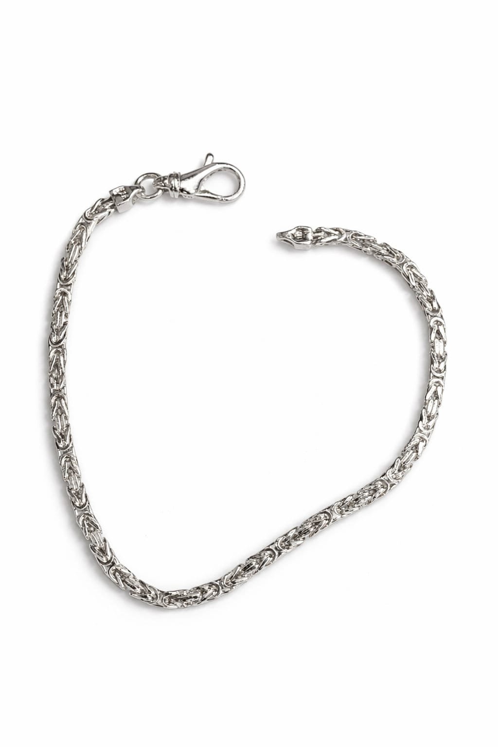 צמיד אלגנטי וקלאסי עשוי כסף סטרלינג 925 בעבודת חוליות ביזנטית צפופה ומרשימה. העיצוב הייחודי יוצר מראה עשיר עם גימור מבריק ונוכחות יוקרתית על היד.