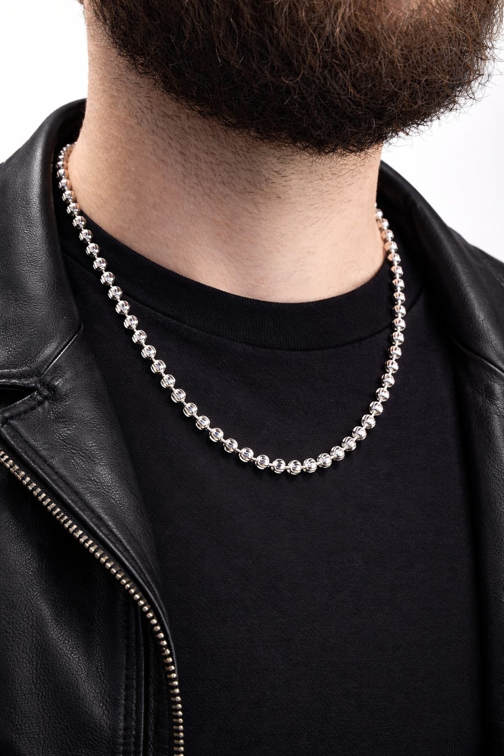 שרשרת כדורים חיתוך יהלום מכסףשרשרת כדורים חיתוך יהלום מכסף